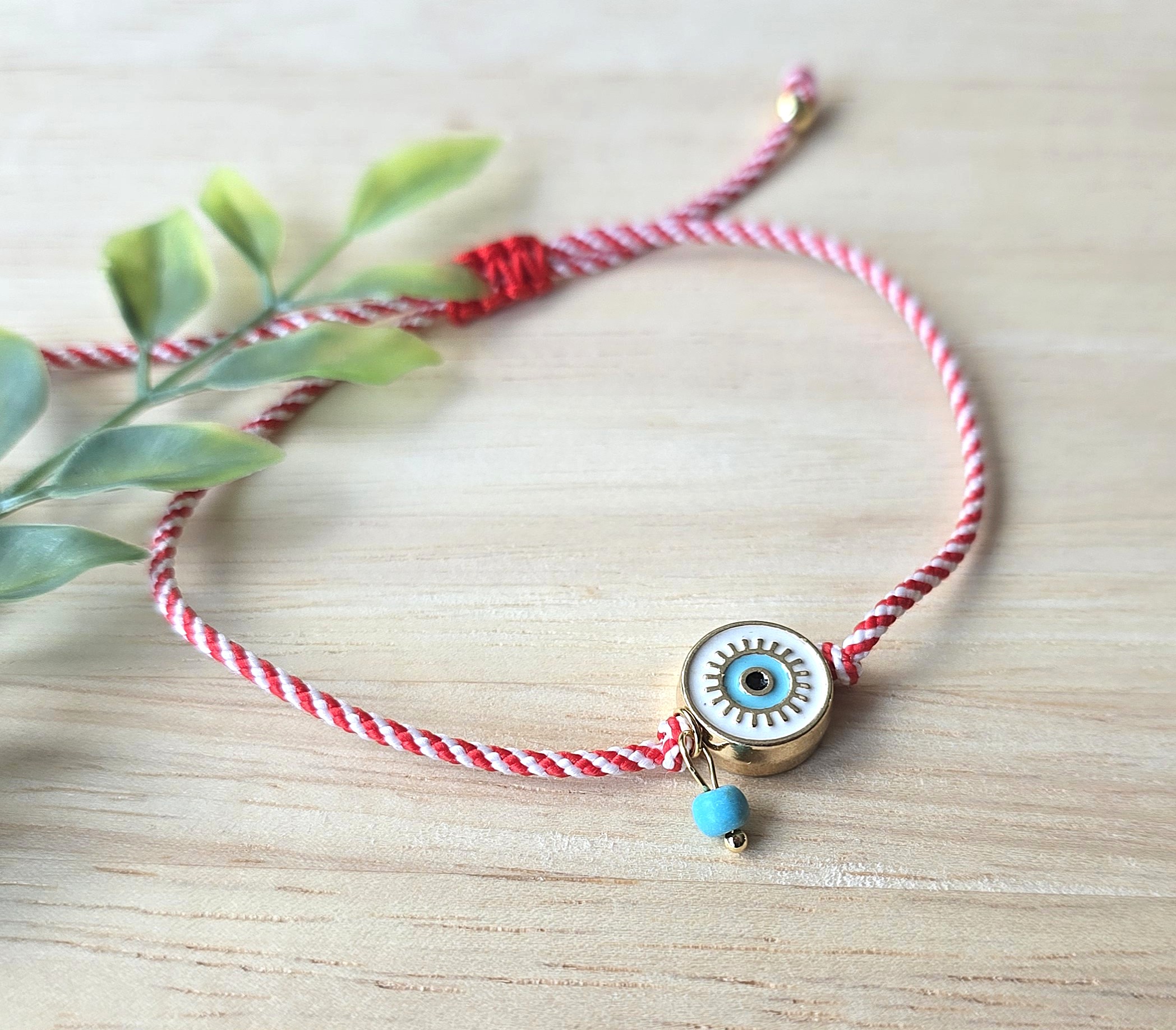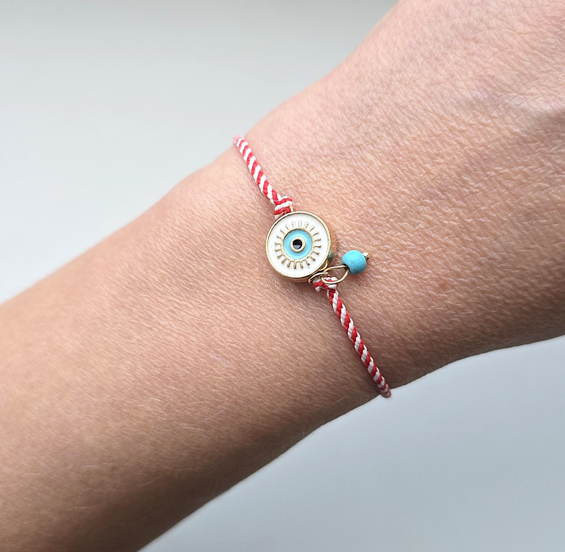 “Kurja silma” sümbol on iidne talisman, mida tuntakse paljudes kultuurides. See on mõeldud kandja kaitsmiseks negatiivse energia ja kadeduse eest ning usutakse, et see toob hingerahu ja õnne. Puna-valge pael lisab täiendavat sümboolikat, viidates sageli uuenemisele, tervisele ja elujõule.