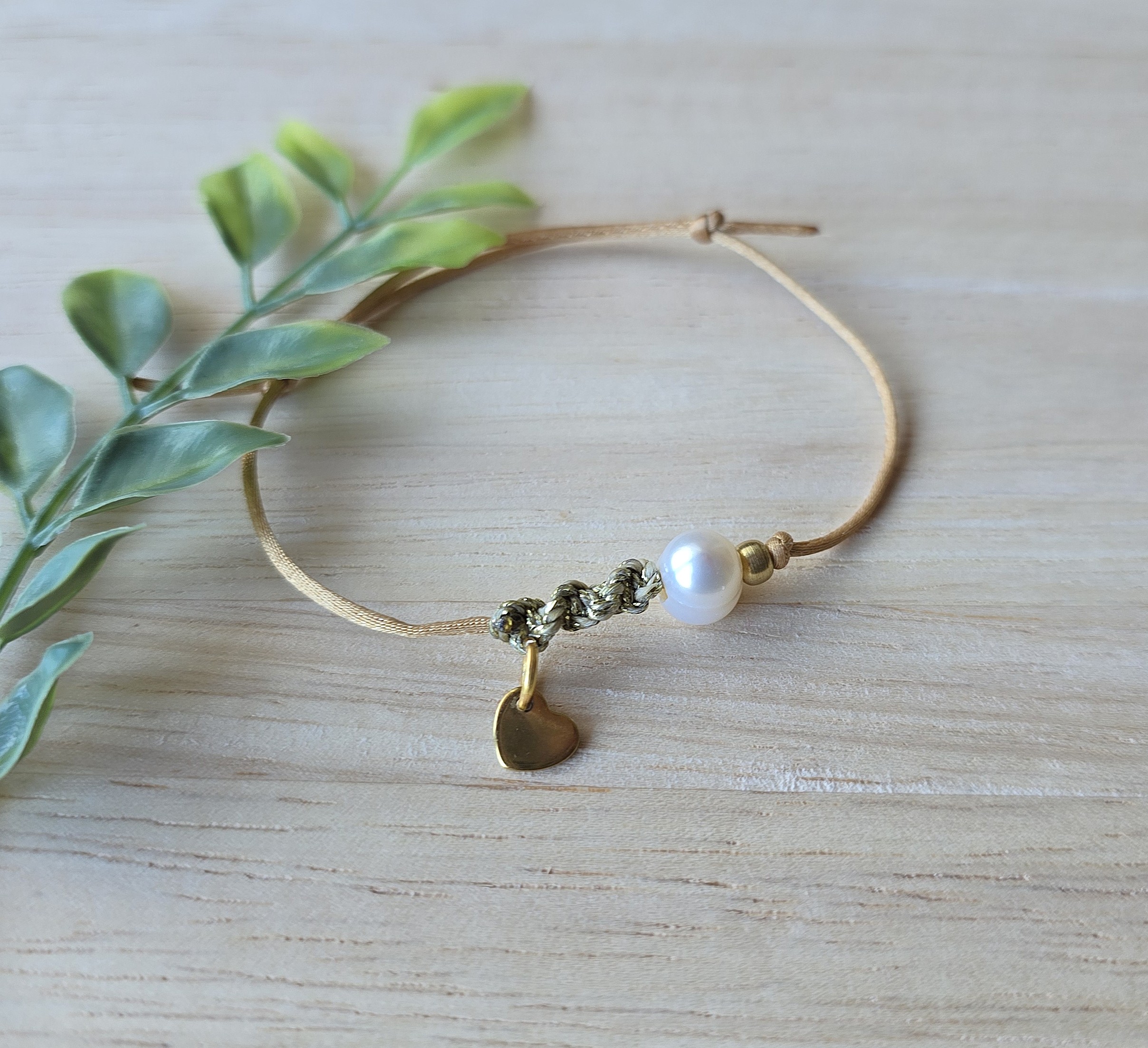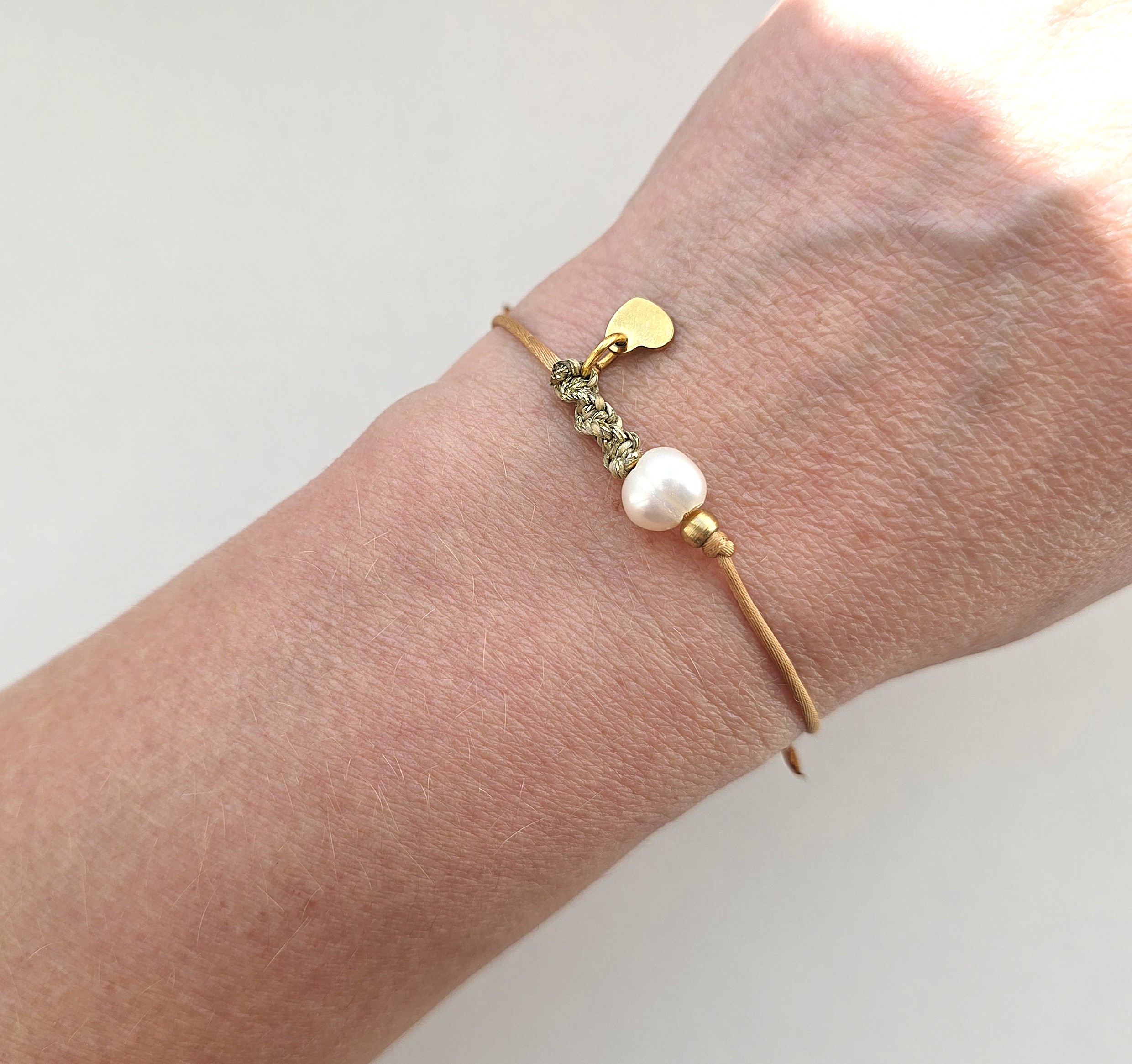 Too oma igapäevaellu veidi õrnust ja sümbolismi. See käsitööna valminud minimalistlik käevõru ühendab endas pärli puhtuse ja pisikese kuldse südame soojuse. Mugav libisev kinnitus.
