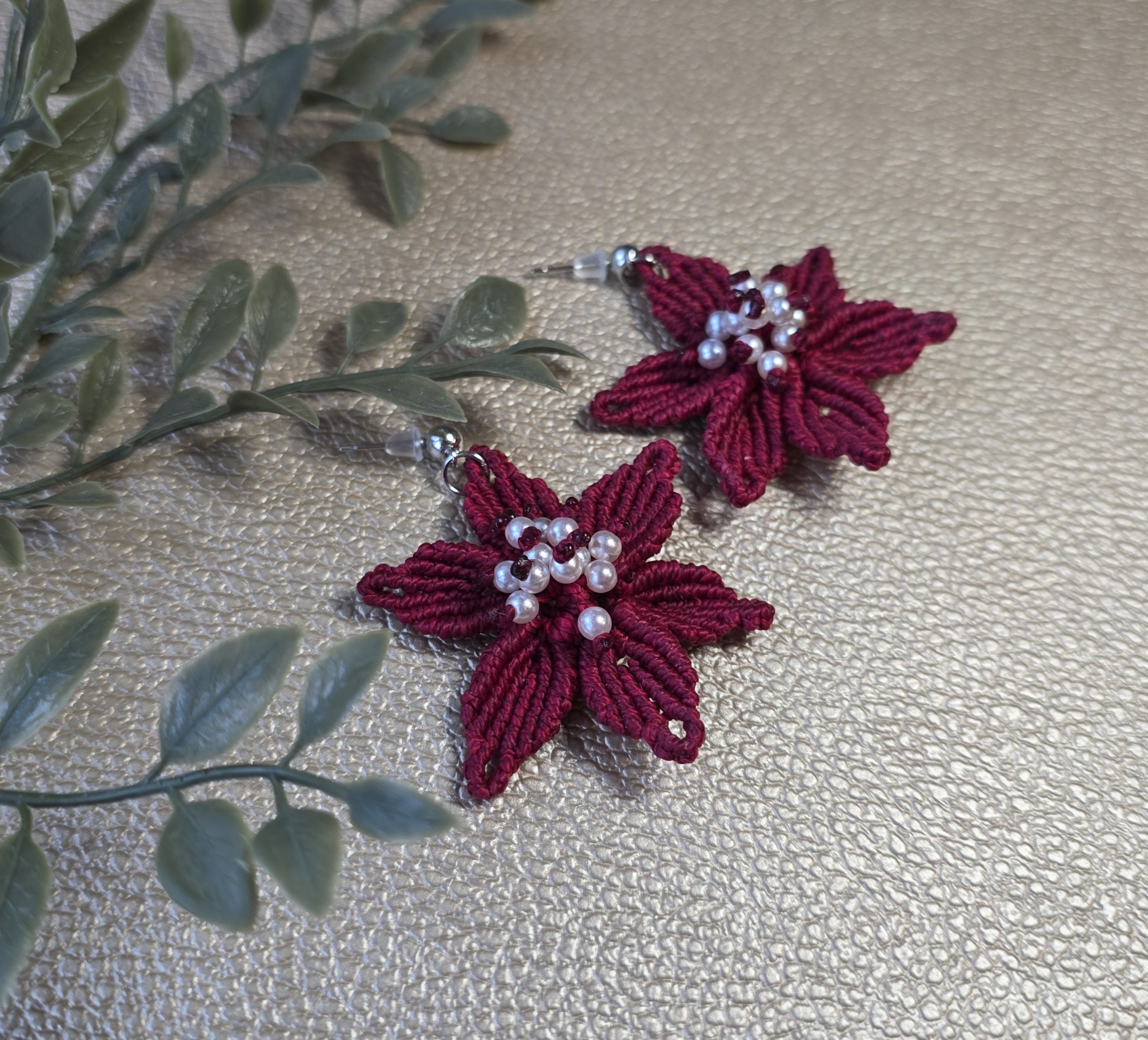 Elegantne ja stiilne liilia õie kuju, mis on inspireeritud looduse kuninglikkusest ja graatsiast. Sügav ja luksuslik tumepunane (Burgundi/veinipunane). See rikkalik toon on pilkupüüdev ja loob dramaatilise kontrasti. Kaunistatud väikeste valgete pärlitega, mis lisavad ehtele peent sära ning elegantsi. Kvaliteetne, kerge ja vastupidav makramee nöör, mis tagab mugava kandmise terveks päevaks. Tegu on ainulaadse käsitööga, kus iga sõlm on punutud pühendumusega, muutes iga paari eriliseks kunstiteoseks.