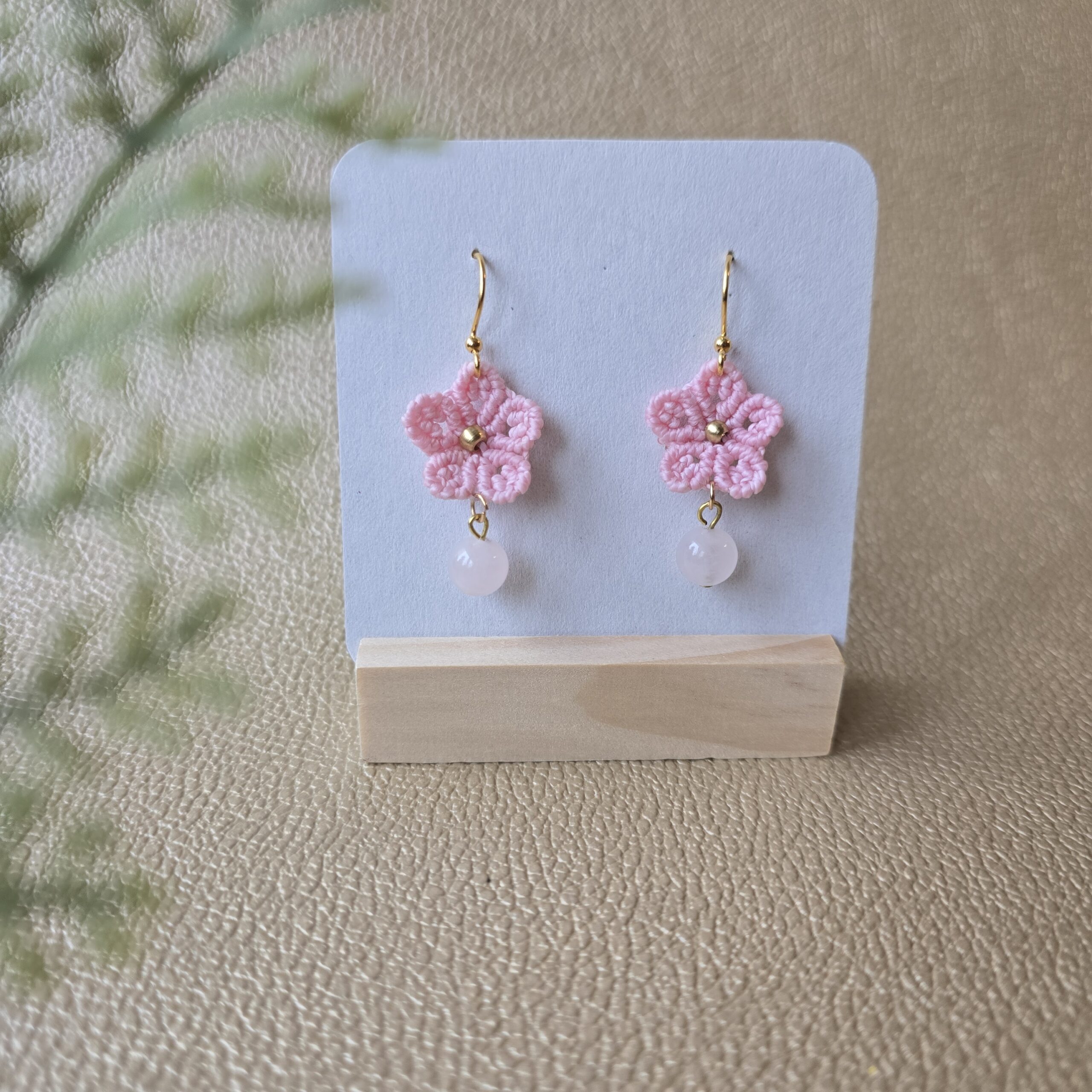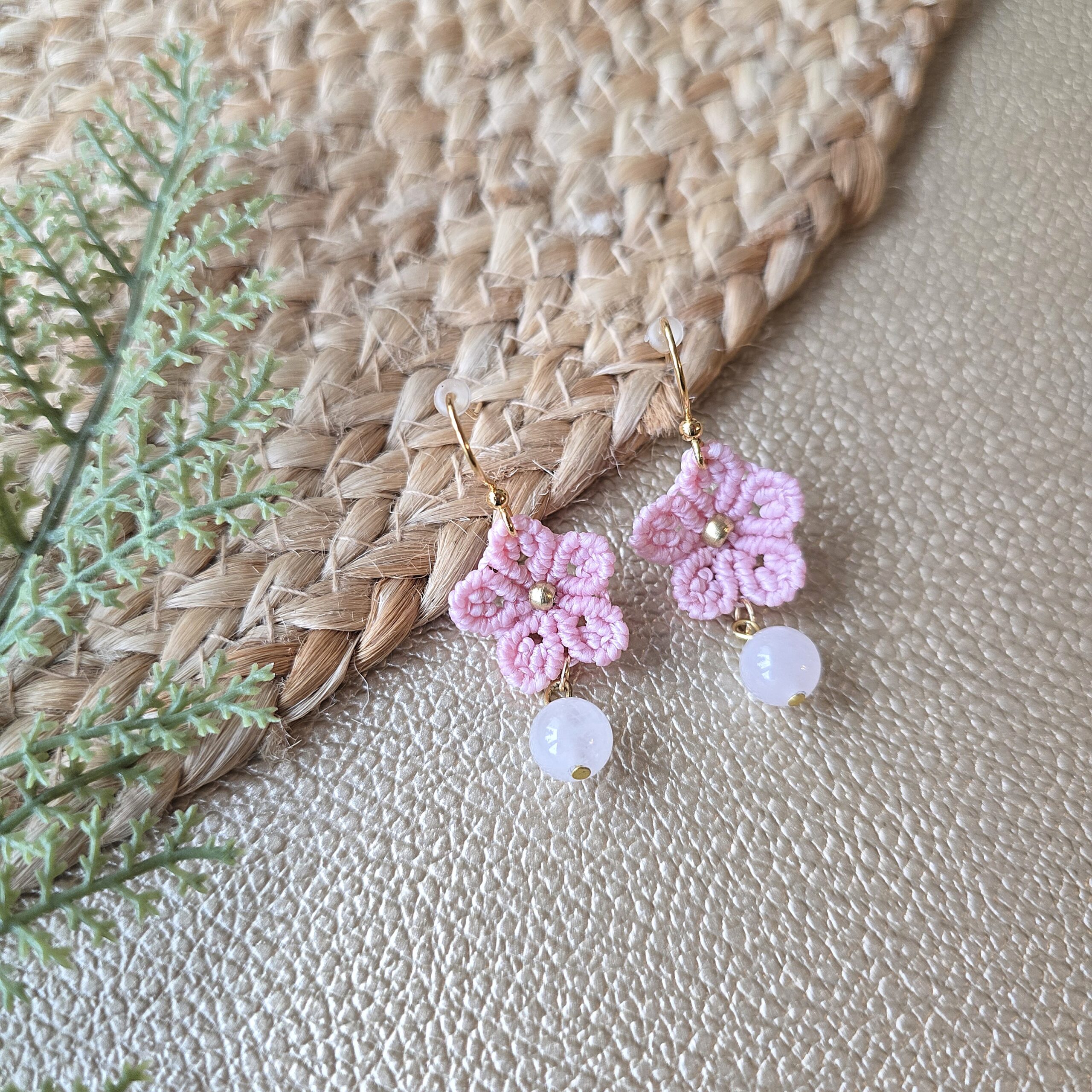 Ainulaadsed Käsitöö Makramee Kõrvarõngad – Lilleline Elegants Roosa Kvartsiga