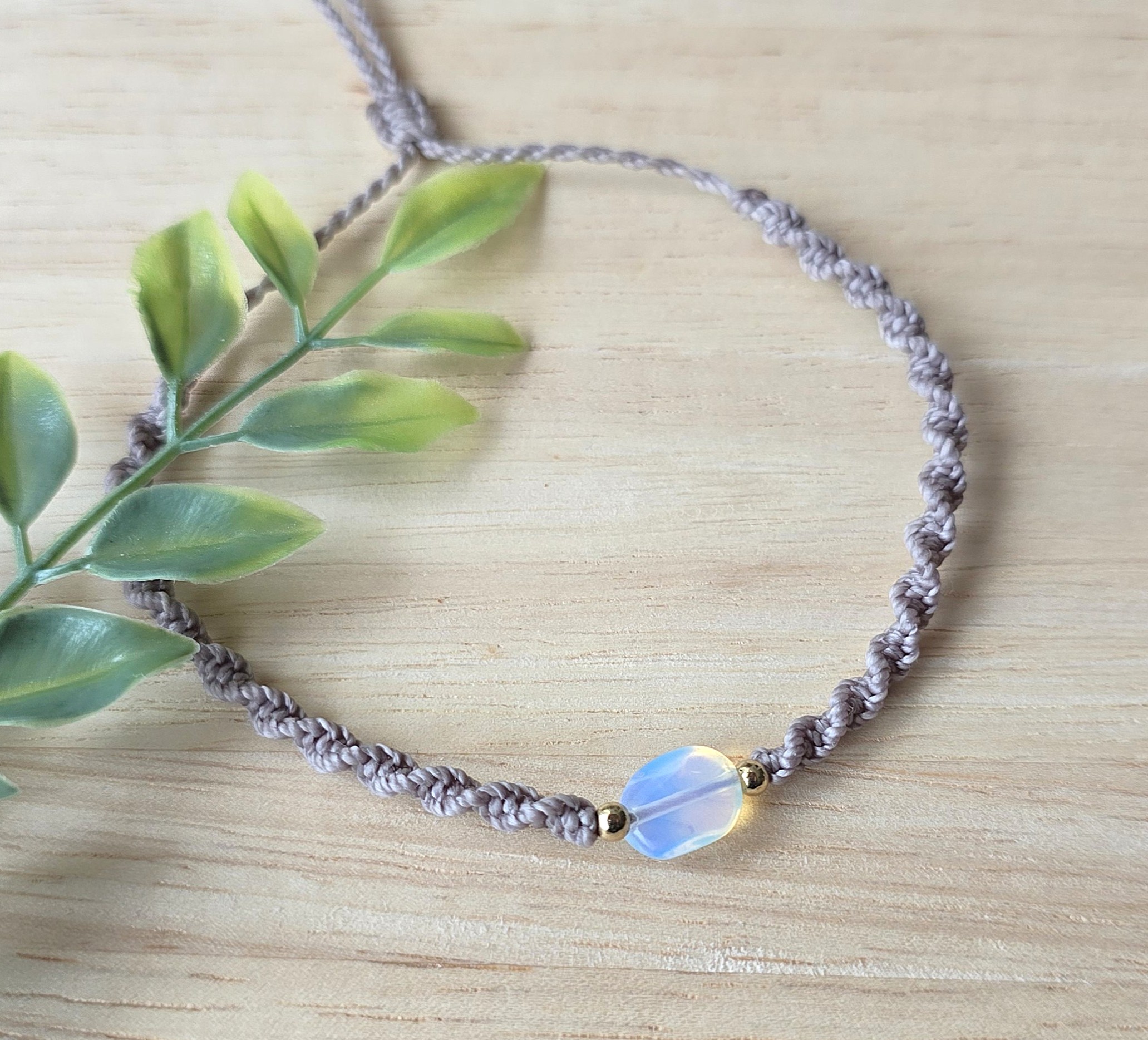 Käsitsi punutud makramee käepael opaaliga on õrn ja lummav aksessuaar, mis ühendab endas käsitöö ilu ja opaali vääriskivi ainulaadsed energeetilised omadused. Vastupidav makramee nöör, mis tagab käepaela pikaajalise kasutuse. Reguleeritav suurus, mis sobib erinevatele randmeümbermõõtudele.