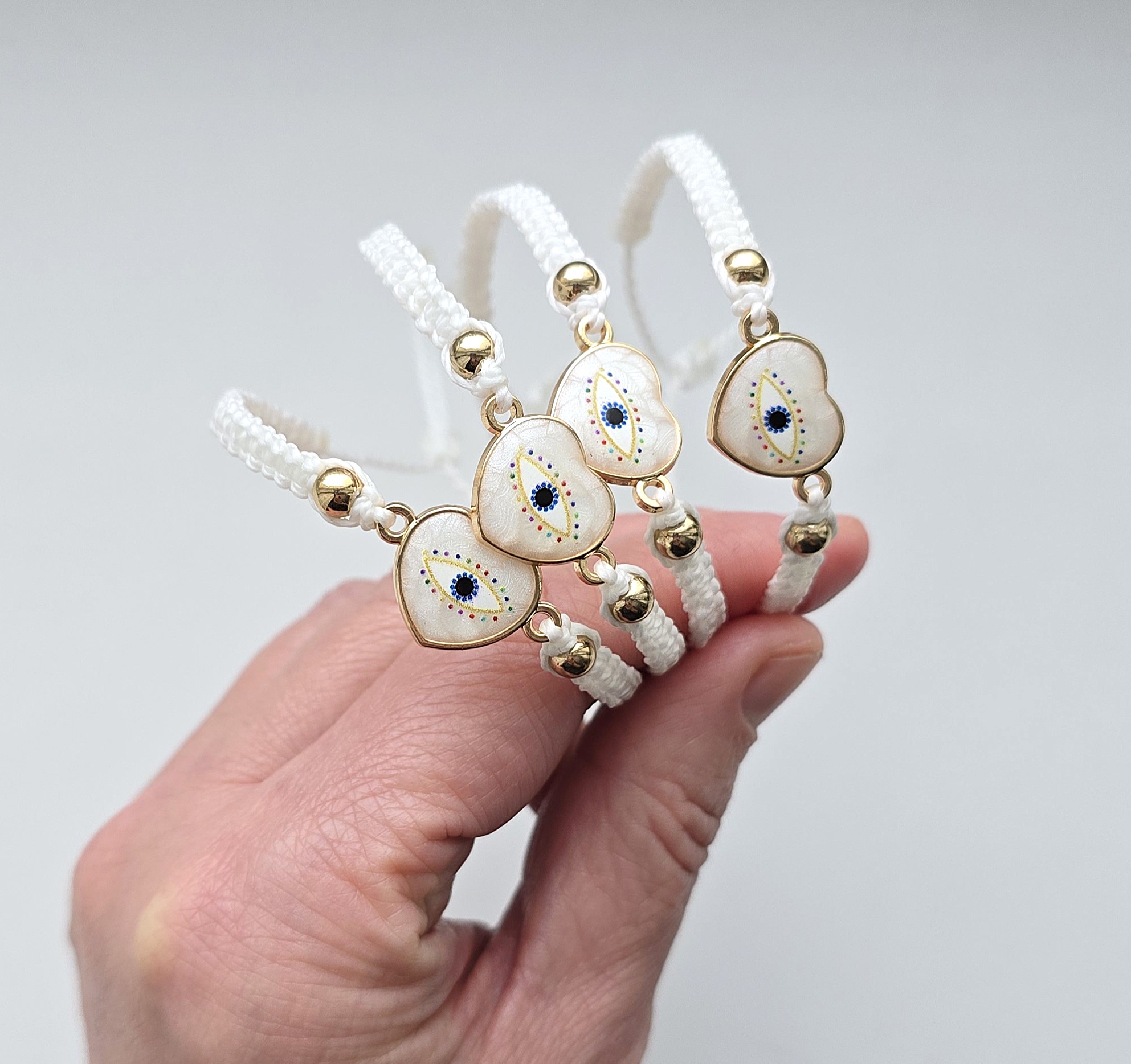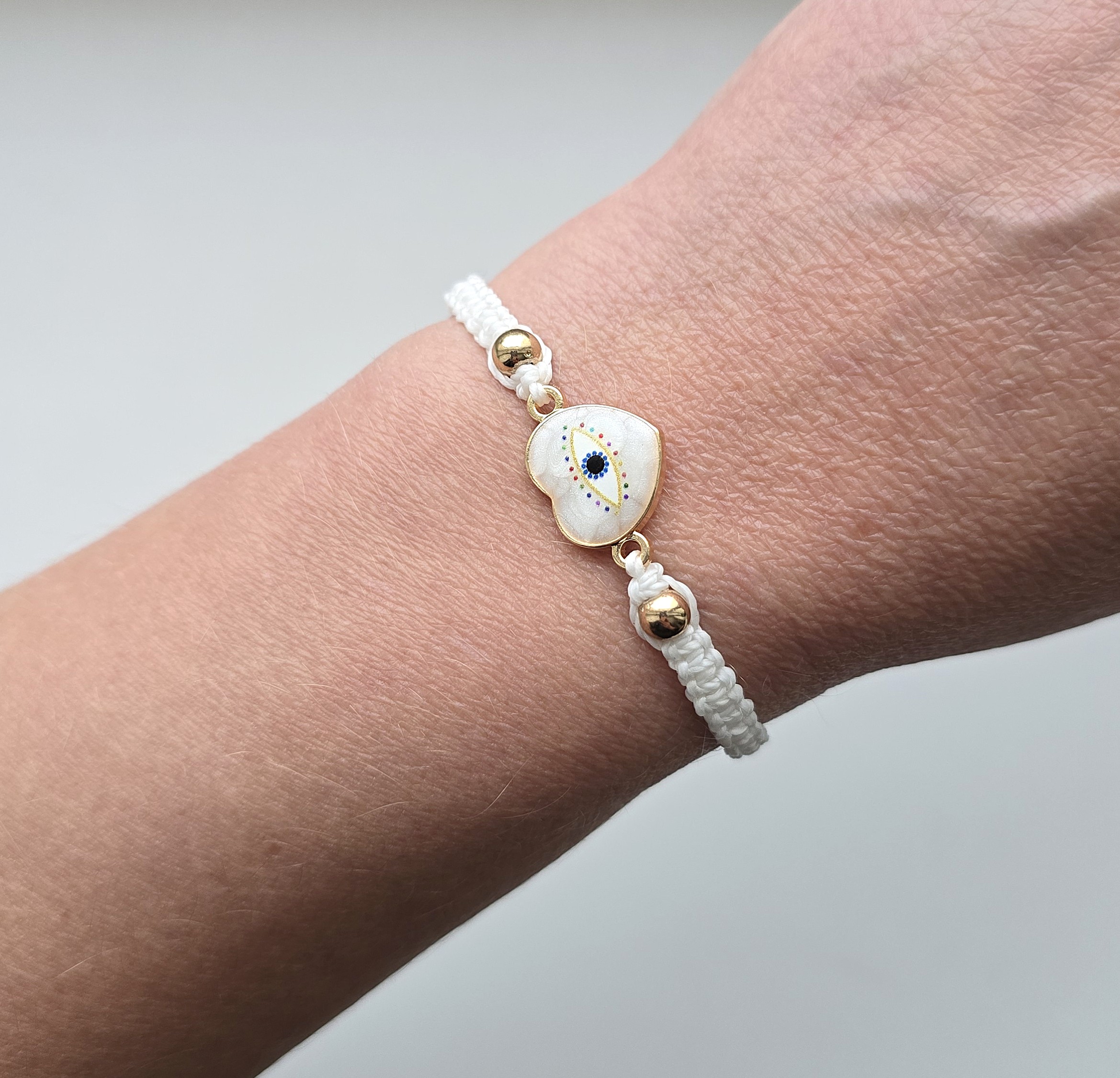 Lisa oma igapäevasele välimusele õrnust ja positiivset energiat selle käsitsi punutud käevõruga. Valge nöör sümboliseerib puhtust ja uut algust, samas kui südamekujuline amulett pakub kaitset ja rahu.